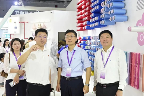 展會期間,賈大風會見了中國紡織工業聯合會原會長王天凱,黨委副書記陳偉康,副會長李陵申、端小平,原副會長孫淮濱,中國化學纖維工業協會會長陳新偉等中國紡聯領導,并在通用技術新材領導班子陪同下走訪了魏橋紡織、盛虹、新鄉化纖、永榮錦江、新華源、賽得利、互幫紡織、沛縣展團等纖維產業鏈代表企業,圍繞產業發展情況、企業產品創新等情況進行了深入交流。