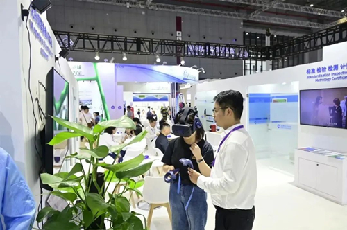 化纖成套裝備VR體驗:通用技術新材旗下的化纖裝備制造企業具有50余年生產化纖成套設備的經驗,提供集智能裝備、設計咨詢為一體的化纖紡織工程系統解決方案,產品性能達國際先進水平,應用于各類纖維領域,可滿足國內外市場需求。展會現場,通用技術新材為參展觀眾提供VR虛擬現實體驗,讓觀眾身臨其境地感受化纖紡織裝備生產全流程。