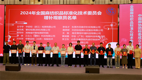 會(huì)議表彰了2023年度全國(guó)麻紡織品標(biāo)準(zhǔn)化技術(shù)委員會(huì)標(biāo)準(zhǔn)化工作的先進(jìn)單位和個(gè)人,同時(shí)為新增補(bǔ)的觀察員頒發(fā)了證書。