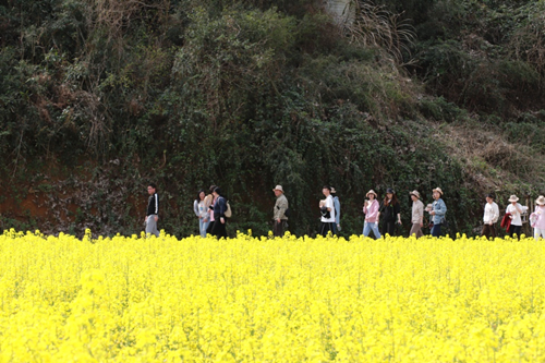 伴著和煦的春風,滿載著職工的大巴車從公司出發(fā)。一路上大家歡聲笑語、其樂融融,大概一個半小時車程后,大家到達了此次活動的第一站——陳蔡千畝油菜花田。景區(qū)內(nèi)盛開的油菜花競相爭艷,散發(fā)出濃濃春意。大家卸下平日工作中的緊張和疲憊,漫步于油菜花田,紛紛拿出相機拍照留念,盡情享受春光里的無限美好。