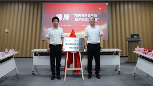 會議現(xiàn)場,浙江中紡標和上汽大眾質(zhì)量保證部實驗室分別對企業(yè)發(fā)展情況及黨建工作進行了介紹,隨后簽訂了黨建共建合作協(xié)議,并進行“車內(nèi)材料微生物技術研究課題組”揭牌儀式。
