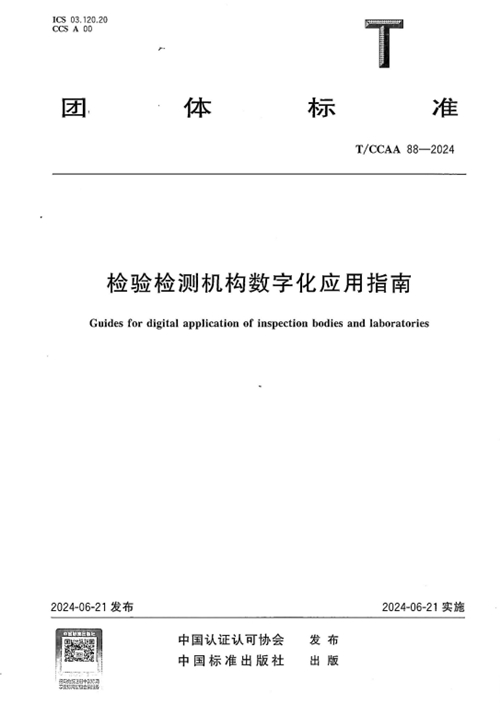 中紡標(biāo)參與制定的《檢驗(yàn)檢測(cè)機(jī)構(gòu)數(shù)字化應(yīng)用指南》團(tuán)體標(biāo)準(zhǔn)正式出版