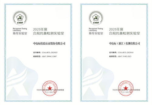 喜訊!通用技術中紡標兩地實驗室榮獲2025年度CIAA推薦合規抗菌檢測實驗室