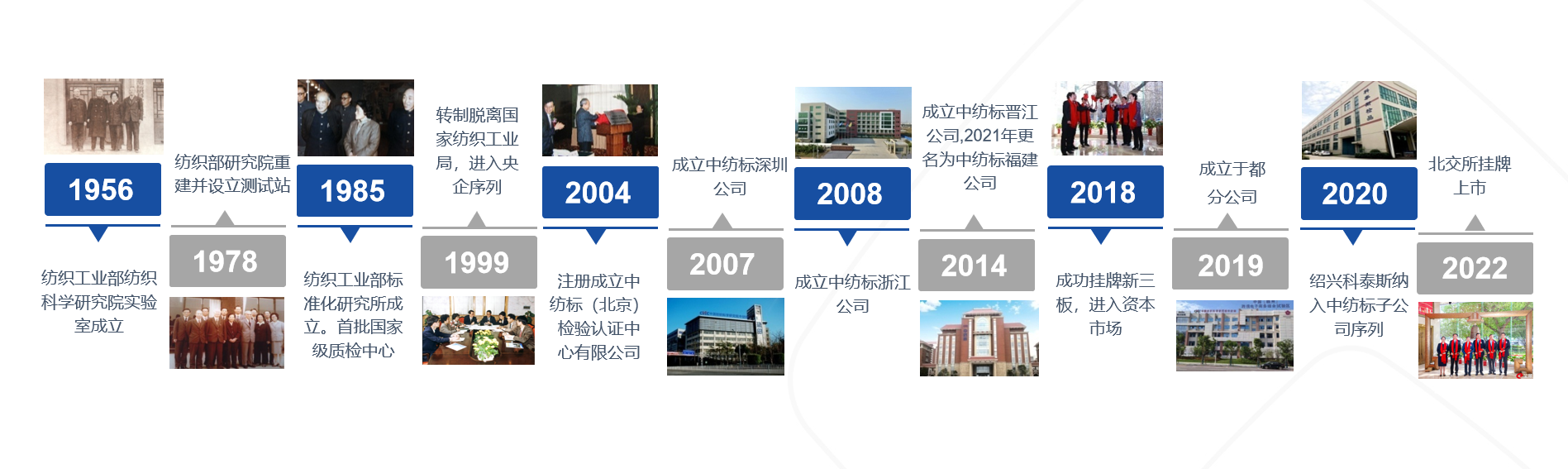中紡標(biāo)檢驗(yàn)認(rèn)證股份有限公司(證券簡稱:中紡標(biāo),證券代碼:873122,英文縮寫CTTC)由中國紡織科學(xué)研究院有限公司于2004年出資組建,是集標(biāo)準(zhǔn)、檢驗(yàn)、檢測(cè)、計(jì)量、認(rèn)證五位一體的綜合性技術(shù)服務(wù)機(jī)構(gòu),可為紡織服裝企業(yè)提供全方位、全產(chǎn)業(yè)鏈質(zhì)量解決方案。主要業(yè)務(wù)包括紡織標(biāo)準(zhǔn)研究和制修訂、紡織及輕工產(chǎn)品檢驗(yàn)檢測(cè)和認(rèn)證、試驗(yàn)用耗材研發(fā)及經(jīng)營、儀器校準(zhǔn)等。